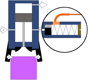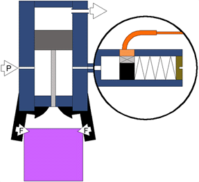 Le système Autotact utilise les propriétés des capteurs à effet Hall associés à des aimants à flux spécialement orienté, pour cadence élevée. Etant donné la précision mécanique des pinces New-Mat, l'approche des doigts sur la pièce saisie se fait instantanément, mais sous faible pression. Buté par la pièce, le piston ne se déplace plus et la chambre du cylindre se complète en pression d'air selon le réseau d'alimentation. Lorsque la pression atteint la valeur convenue, un piston à tarage variable équipé d'un aimant se déplace et sollicite un capteur magnétique à effet Hall pour donner l'information de présence par serrage de la pièce. En cas d'absence de pièce, les doigts vont en complète fermeture où un capteur de fin de course annule l'information de présence. |
